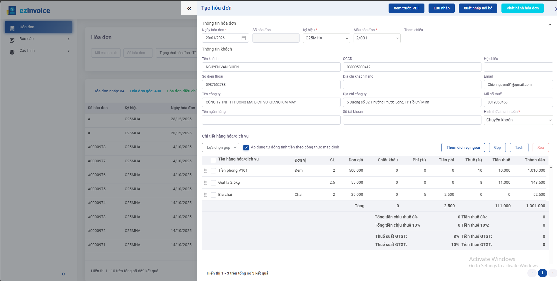 2.2. Tạo hóa đơn