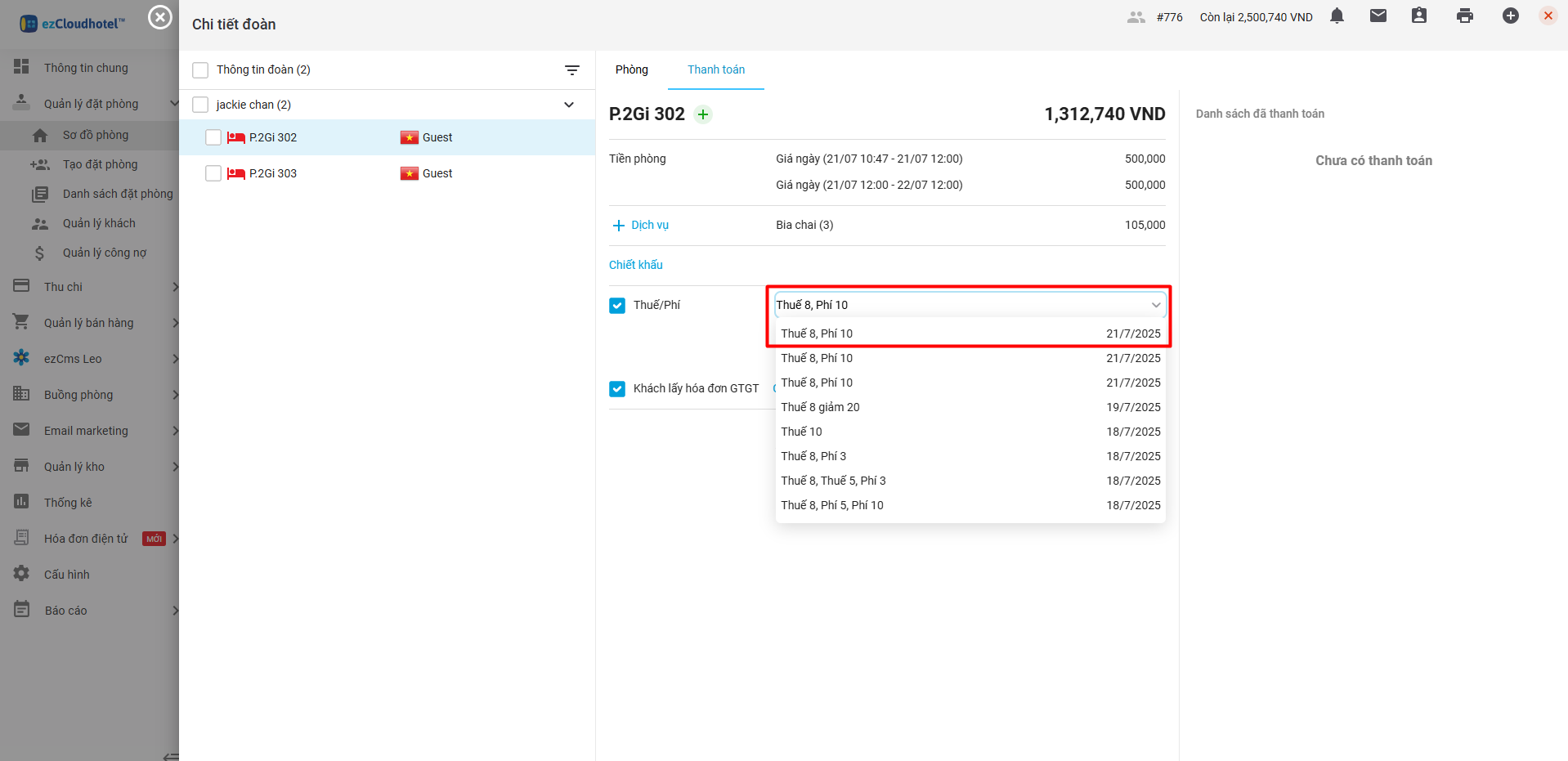 1.2. Thanh toán đồng bộ tất cả các phòng: